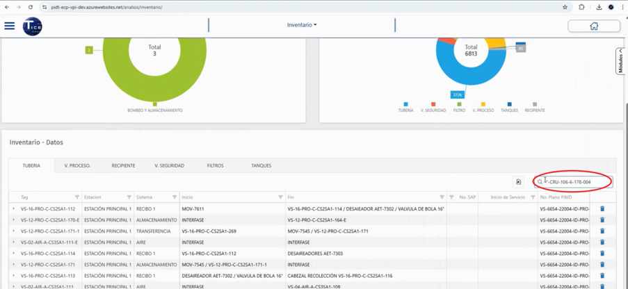 2.2. Módulo de Inventario: Para validar la precarga de los activos (segmentos de tubería o recipientes) que serán evaluados, navegue hacia el “Módulo de Inventario” a través del menú principal.