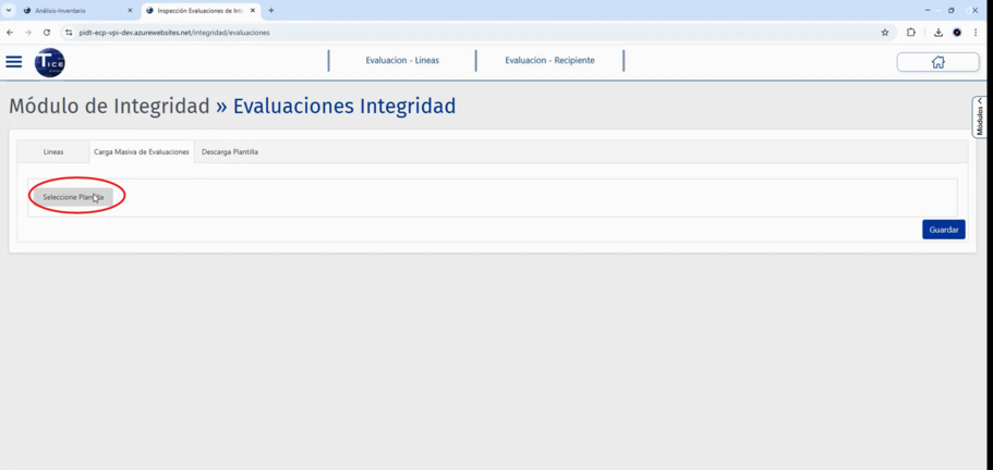 3.3. Carga Masiva de Evaluaciones: Dentro de la pestaña seleccionada, haga clic en la opción “Carga Masiva de Evaluaciones”.