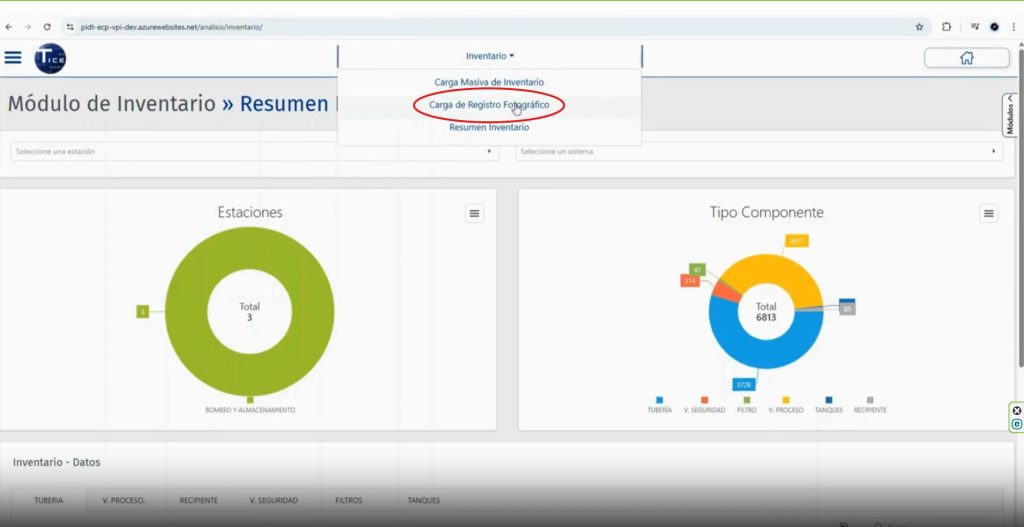 Para realizar el cargue de registros fotográficos, en el menú “Inventario” se selecciona la funcionalidad “Carga de Registro Fotográfico”.