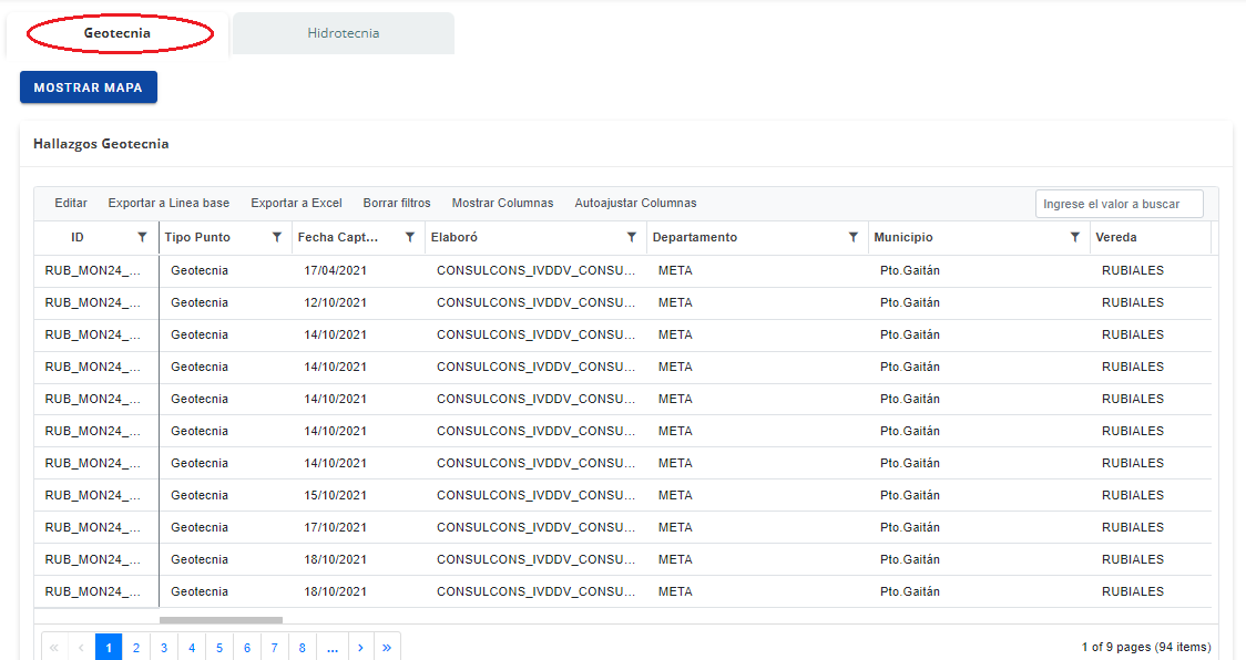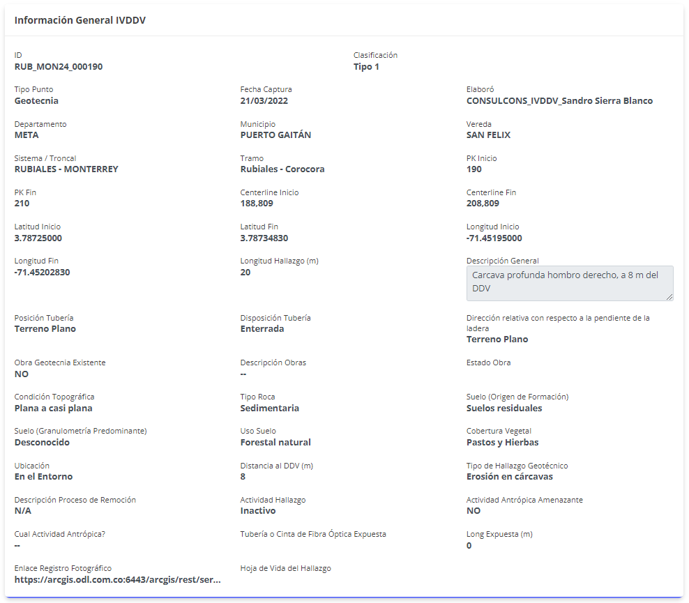 En esta sección, se encuentra el consolidado de hallazgos de Geotecnia identificados y capturados mediante dispositivos móviles. La captura de información se realiza mediante el uso de la licencia Field Worker de ArcGis.
