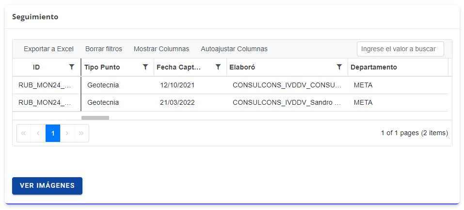 , visualizará las imágenes asociadas a cada hallazgo. Estas imágenes son capturadas mediante el formulario GIS MOBILE.