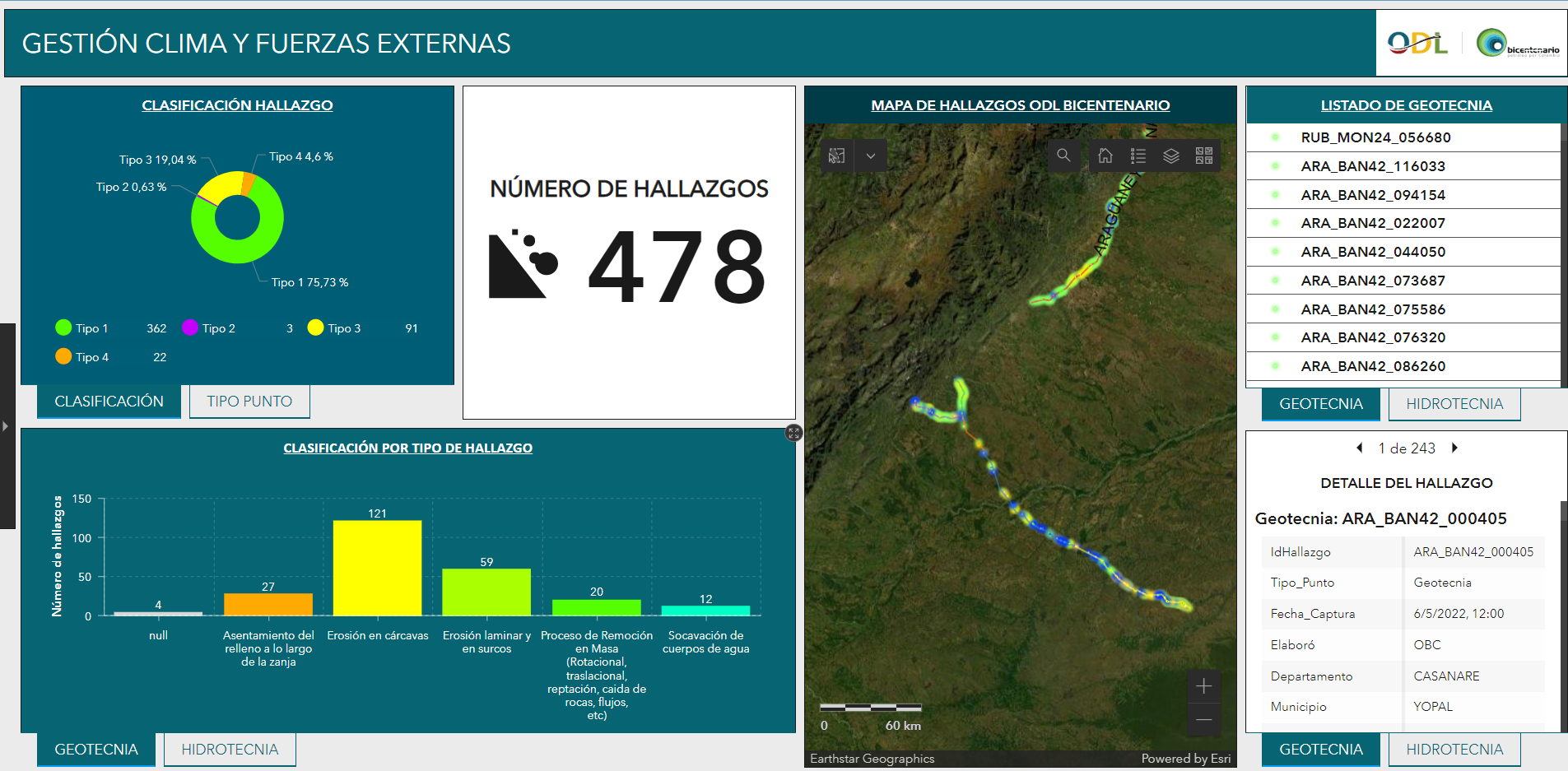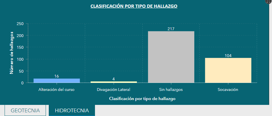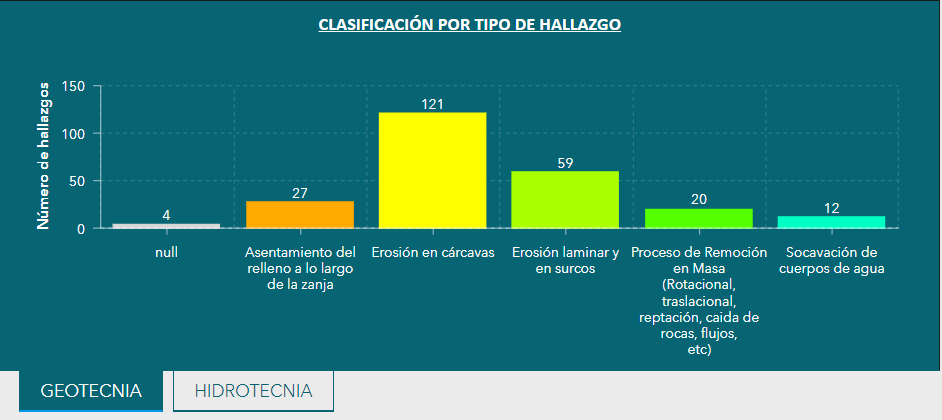 Para Observar la clasificación de hallazgos encontrara la información dividida por dos Categorías Geotecnia y Hidrotecnia.