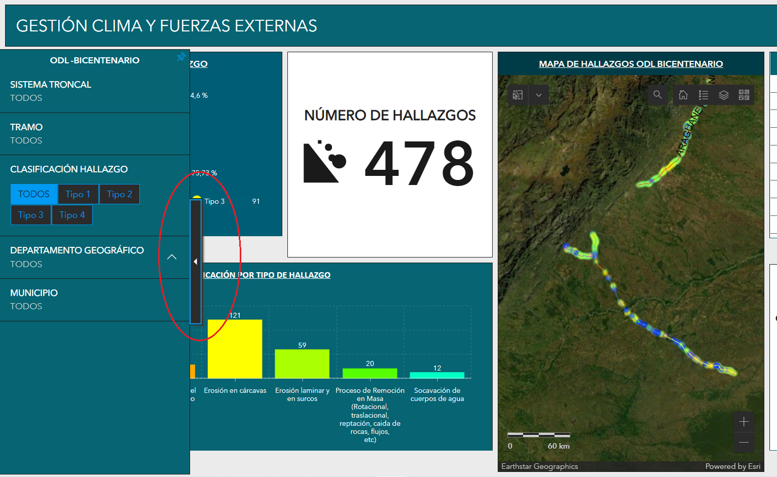 Al darle click en el porcentaje de la grafica que desee consultar, Encontrara la información en el mapa en cual se filtro únicamente.