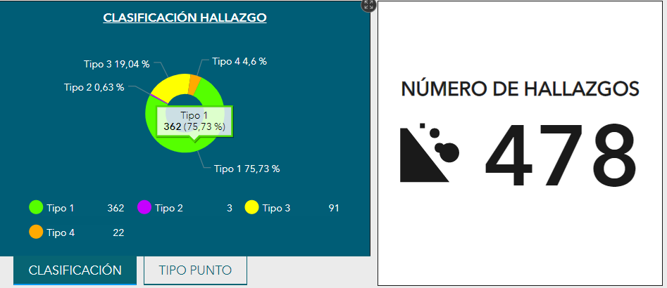En la Grafica Tipo de Punto. Encontrara Cuantos Tipos de hallazgos hay en en las dos categorías.