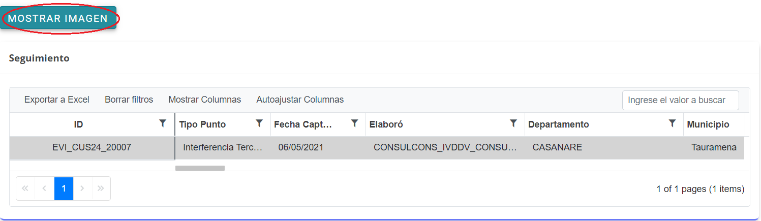 Al seleccionar una columna se abrirá una ventana emergente en la parte inferior donde encontrará el detalle de esa interferencia y el seguimiento con la imagen correspondiente a esa línea.