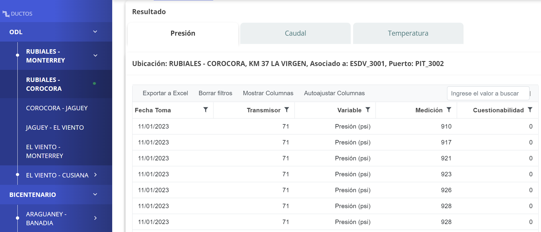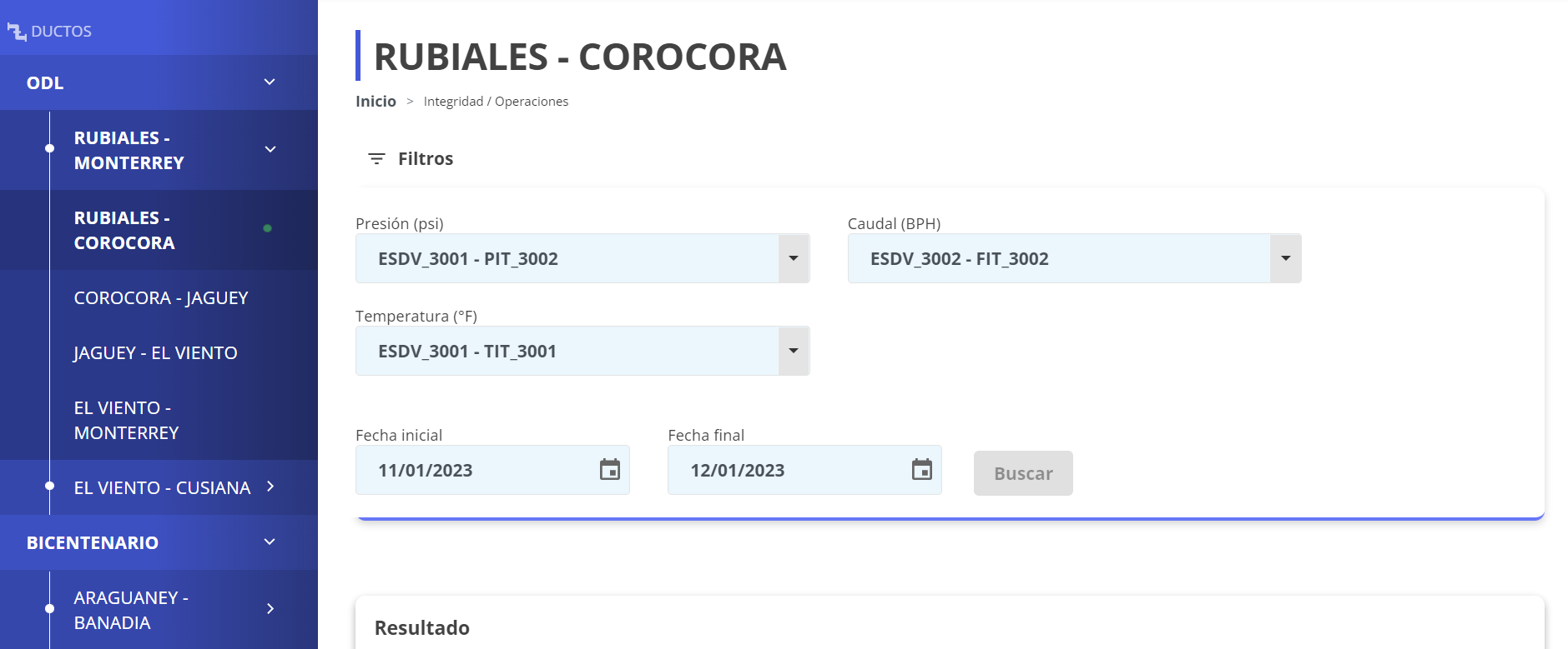 Al ingresar a este módulo visualizará la información de variables operativas en tiempo real por medio de la integración con el sistema SCADA.
