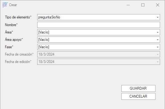 Para agregar una actividad o pregunta es mediante el menú superior descrito en la sección: Formulario de proceso