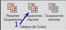 Para consultar el tablero de ocupaciones mayores es mediante el menú superior descrito en la sección: Formulario principal