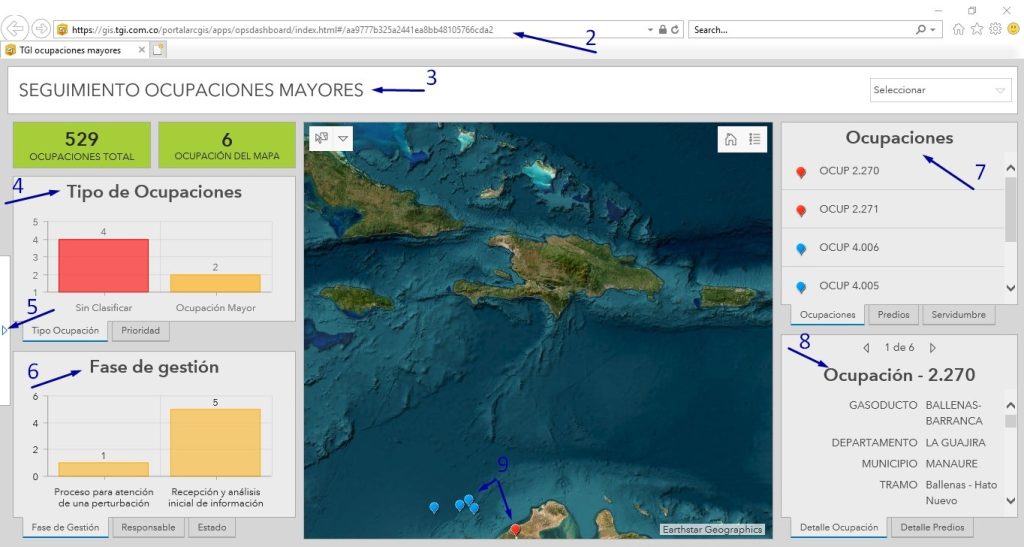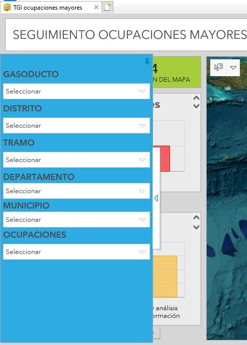 Esta opción nos permite visualizar un tablero de las ocupaciones /Invasiones /Perturbaciones  mayores, nos presenta la información en elementos visuales fáciles de entender