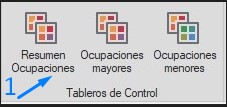 Para consultar el tablero de resumen de ocupaciones es mediante el menú superior descrito en la sección: Formulario principal
