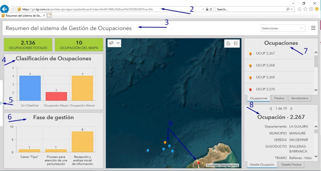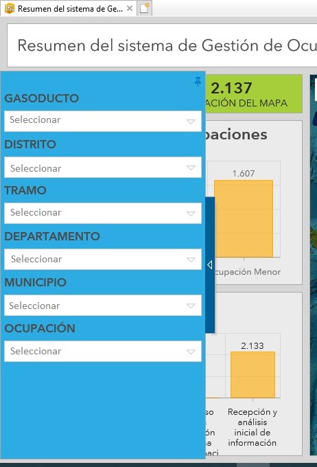 Esta opción nos permite visualizar un tablero del resumen de ocupaciones /Invasiones /Perturbaciones que nos muestra la información en elementos visuales fáciles de entender